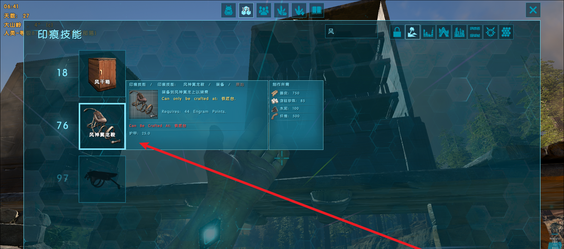 首頁 方舟:生存進化 問答 方舟風神翼龍鞍要多少級才能學? 2023-01-27 風神翼龍鞍等級要求是比較高的,需要人物等級76級才能解鎖,玩家在印痕技能界面就可以查看解鎖等級了,風神翼龍平台鞍需要的材料:獸皮、水晶、水泥、纖維以及金屬錠,玩家用這些材料在製作欄中製作即可獲得風神翼龍鞍。