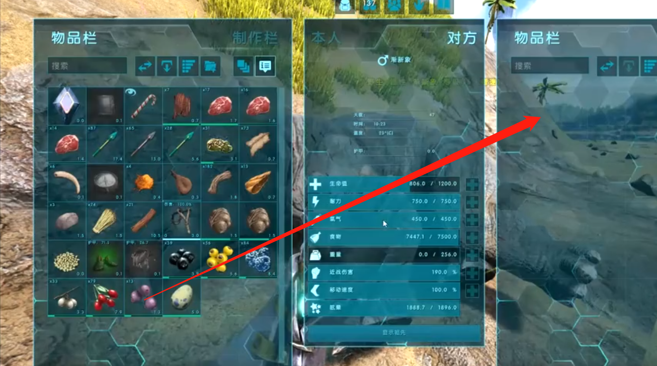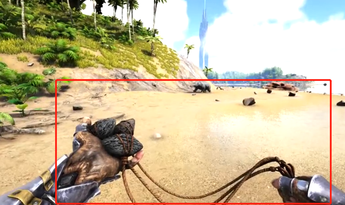 將它拴住後使用武器攻擊它的頭部,會有暴擊,將其擊暈,然後打開它的物品欄