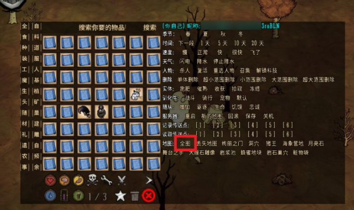 首頁 飢荒 問答 饑荒神話書說方寸山怎麼找? 2023-01-28 飢荒神話書說方寸山位置是隨機刷新的,可以使用以下方法迅速找到:1、進入游戲界面後,按T鍵打開命令控制台,點擊【全圖】顯示。2、按下地圖鍵,在地圖上即可找到【方寸山】,前往即可。
