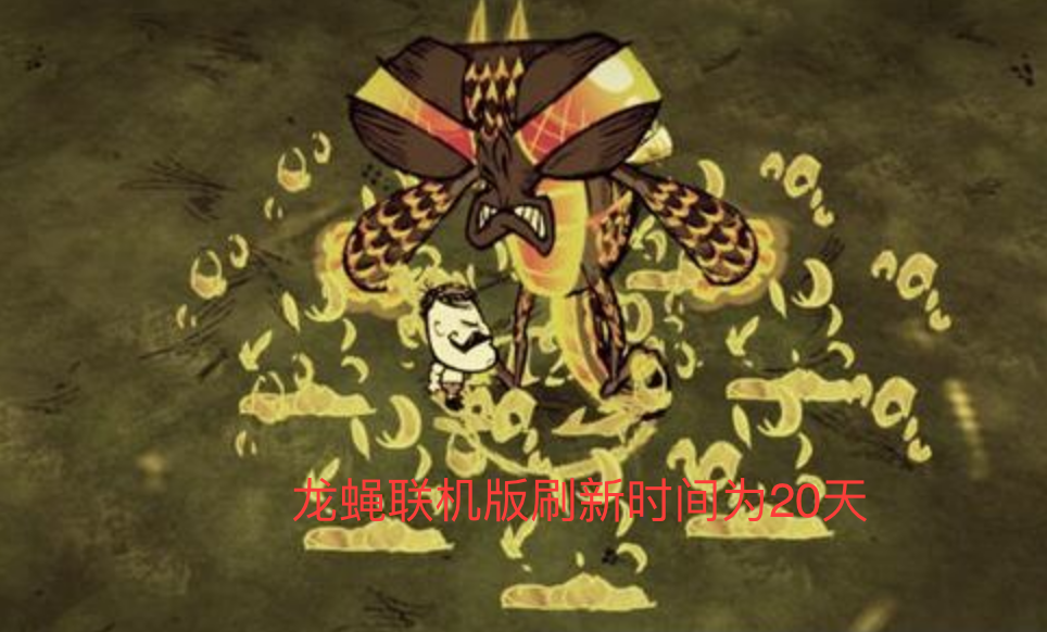 在飢荒單機版中,龍蠅只有在玩家處於夏天時期才會出現,所以是一年刷新一次,而在飢荒聯機版中,龍蠅作為一個BOSS,刷新時間為20天。