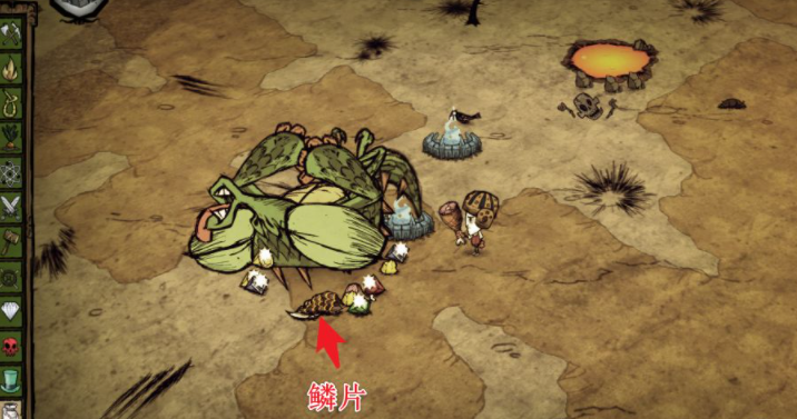 1、鱗片也叫龍鱗,是由饑荒boss龍蠅掉落。首先找到饑荒地圖上的岩漿池,龍蠅就在附近。
