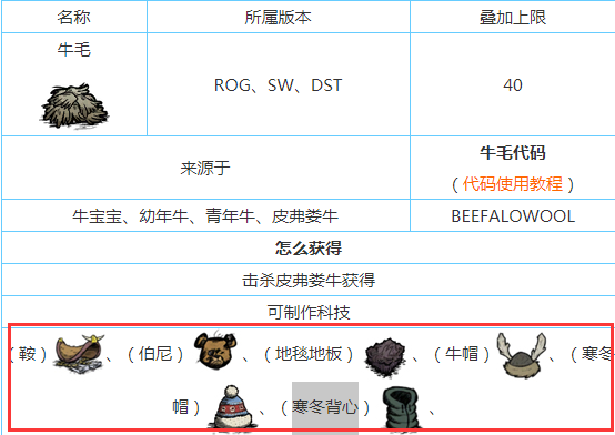 牛毛是饑荒游戲中的一種材料,使用刮鬍刀就可以刮下牛毛了。作用是可以製造不少的毛皮科技,比如保暖使用的牛角帽、寒冬帽、寒冬背心等。