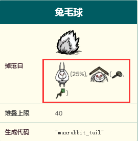 饑荒兔毛可以通過殺死兔人或是使用錘子/解構法杖拆毀洞穴中的胡蘿蔔屋後取得。兔毛可以用來製作毛毯或是胡蘿蔔屋,也可以拿來跟豬豬國王交換2個金塊。