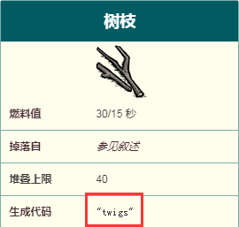 首頁 飢荒 問答 饑荒樹枝代碼是多少? 2023-02-01 飢荒樹枝代碼是"twigs"。樹枝是用來製作大部分工具和其他有用的東西所必須的物品,是游戲初期時玩家應該首先收集的物品之一,收集來源有樹苗、荊棘叢、洞穴香蕉樹以及針刺樹。