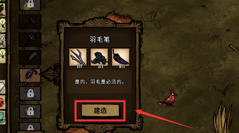 饑荒游戲中的羽毛筆製作需要准備材料樹枝一個,煤炭一個,烏鴉羽毛一個,然後前往科學儀器選擇羽毛筆進行製作就可以了。