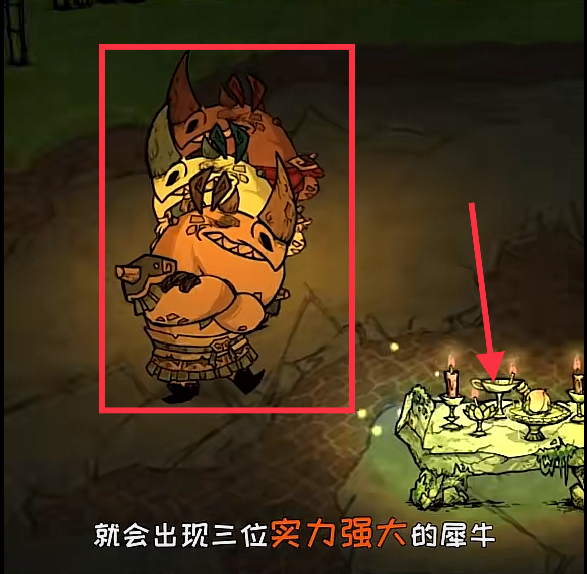 玩家取任意的可燃物放在供桌上,在蠟燭燃燒期間玩家將供品放入供桌,供桌附近刷新三隻犀牛精,如玩家不惹它,犀牛精不會主動攻擊玩家。