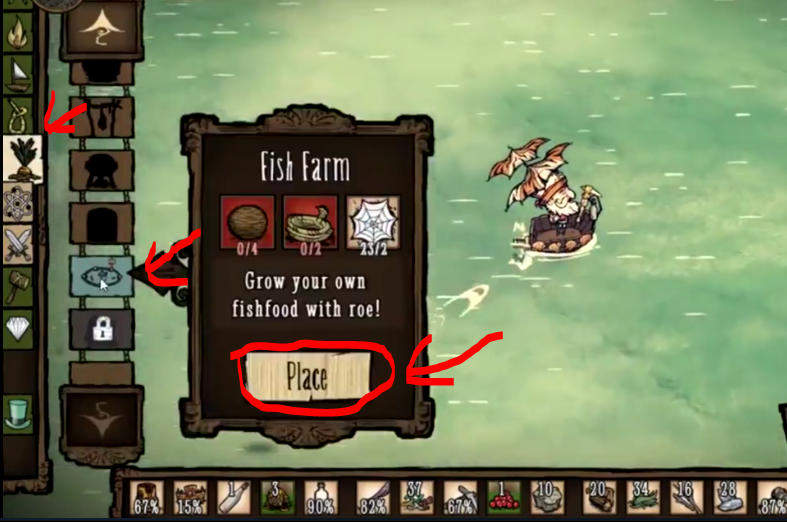 1、在游戲頁面的左邊菜單中找到建築欄里的養魚場(Fish farm),然後點擊製作(Place)。