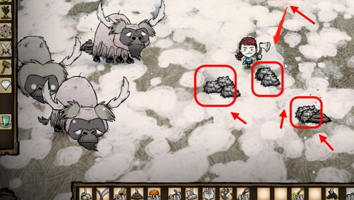 首頁 飢荒 問答 飢荒牛毛怎麼獲得? 2023-02-03 黑夜,去刮牛毛,每隻刮掉三個牛毛,殺死牛,可獲得三牛毛。滑鼠左鍵移動剃刀到對應的牛身上,再次左鍵選擇「刮鬍子」,天亮後統一收集牛毛,剃光後的牛看上去非常地好笑。