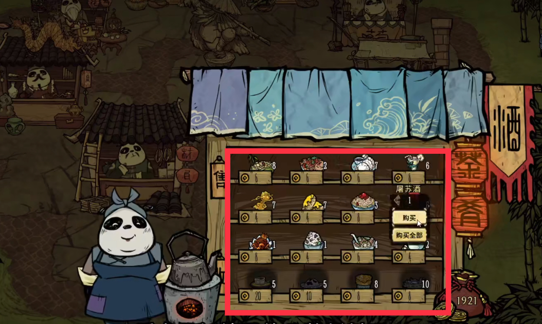 在飢荒聯機版之中玩家如果獲得了銅錢就可以去青竹洲裡面的熊貓小攤里來買自己需要的東西具體信息如下圖所示