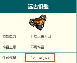 首頁 飢荒 問答 飢荒遠古鑰匙代碼是哪個? 2023-02-04 饑荒遠古鑰匙代碼是atrium_key。它的主要目用途是放入鑰匙孔以啟動遠古入口(以及中庭生態環境),遠古鑰匙可以從殺死遠古犀牛後掉落的華麗大箱子中獲得。