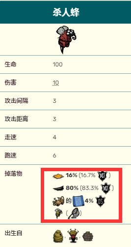 饑荒殺人蜂用途是殺死後會掉落蜂蜜或蜂刺,單人版還有幾率獲得打包帶的藍圖。殺人蜂是蜜蜂具攻擊性的變種,它們對玩家及任何非昆蟲生物都有敵意。