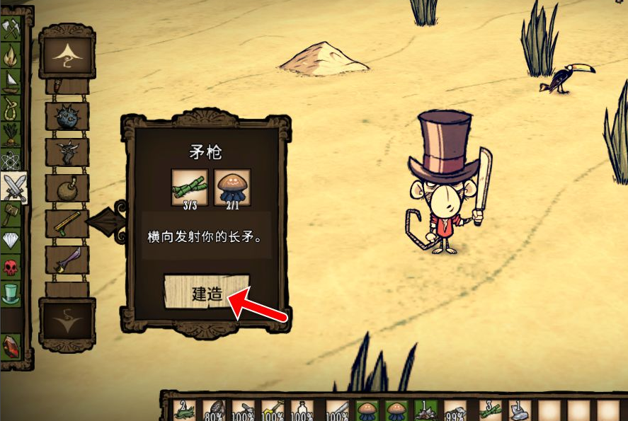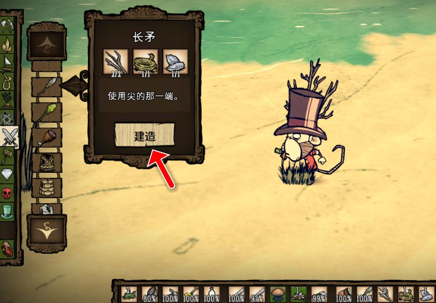 2、光有矛槍還不夠,還必須對矛槍進行裝載,先製作長矛。
