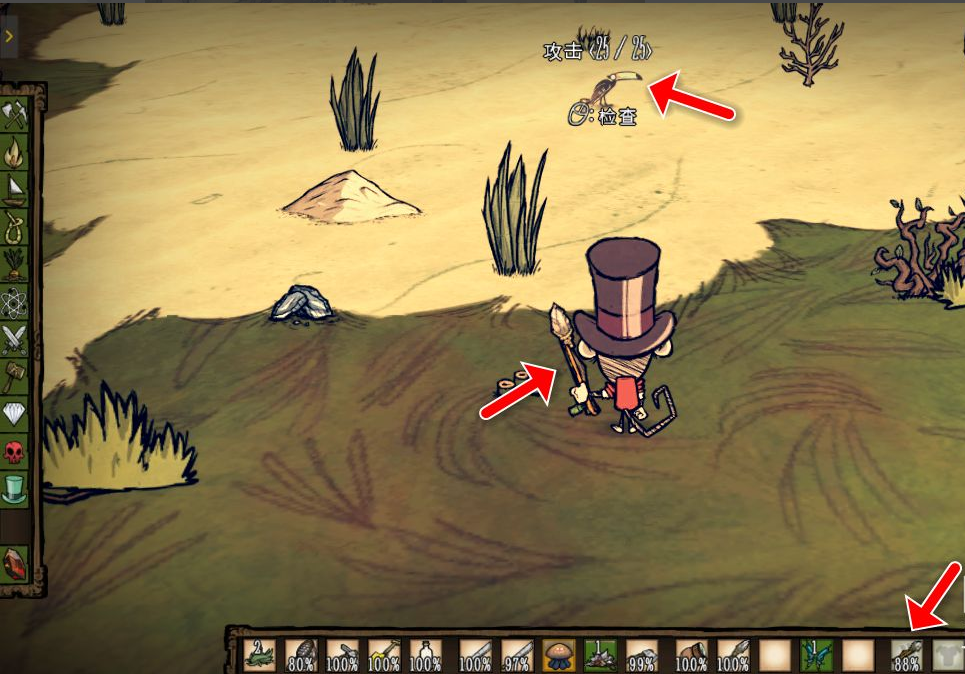 3、長矛製作完畢後,在物品欄進行裝填,如下圖所示。