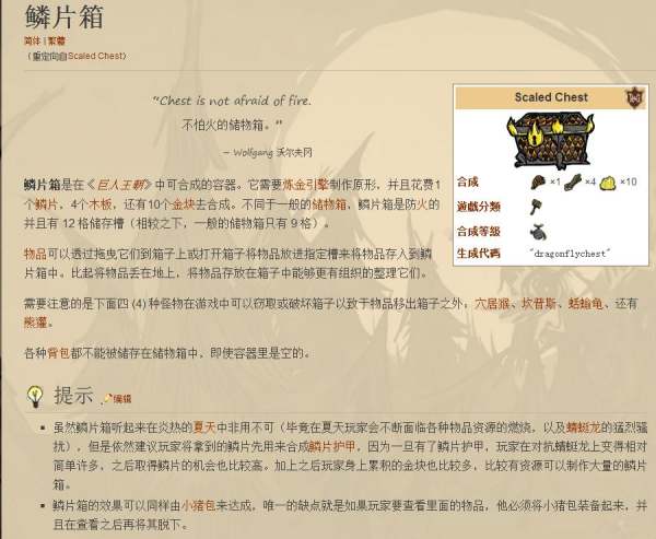 鱗片箱是防火的並且有 12 格儲存槽(相較之下,一般的儲物箱只有 9 格)。