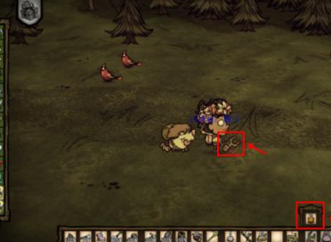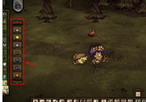 將彈弓拿在手上,往物品裝備欄上方的卡槽里添加彈藥,如下圖所示。