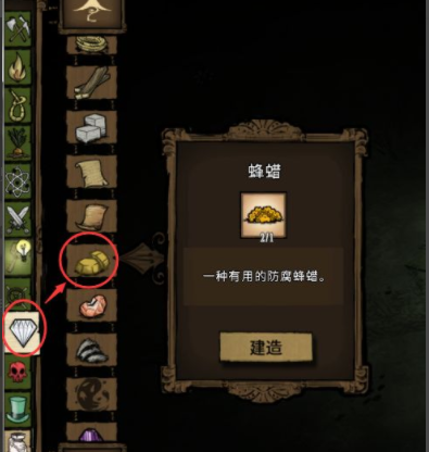 首頁 飢荒 問答 饑荒蜂蠟在哪裡合成? 2023-02-10 饑荒蜂蠟在精鍊一欄合成,具體步驟:1、首先玩家通過擊殺蜂後,獲得蜂巢,如下圖所示;2、解鎖一本科技,打開精鍊一欄(圖標:鑽石),使用1個蜂巢可以製作1個蜂蠟。