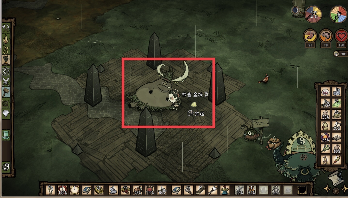 在饑荒之中玩家獲得地精玩偶可以和豬王來進行交易,玩家將地精玩偶給予豬王後玩家可以獲得黃金具體如下圖所示