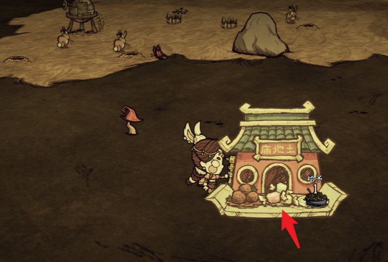 分別在三個空槽放入肉料理,素材料理和零食料理。每種料理都會刷新倒計時,最多存在5天就消失了。當三種貢品同時存在時,土地公公就會現身。