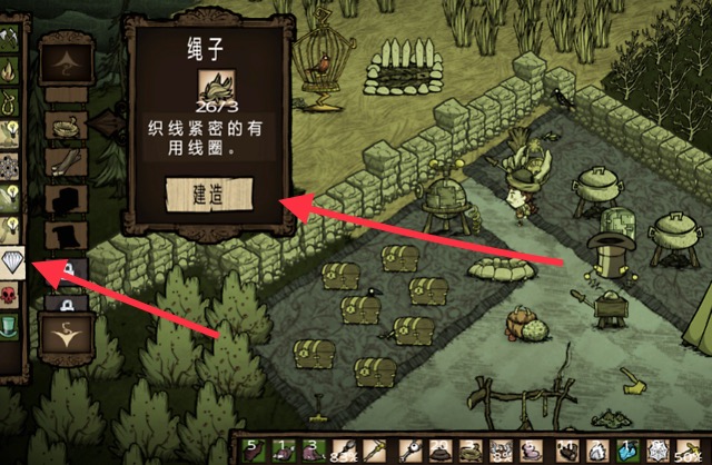 2、科學機器製作出來後角色站到科學機器旁打開精鍊欄就可以用三個草製作繩子了