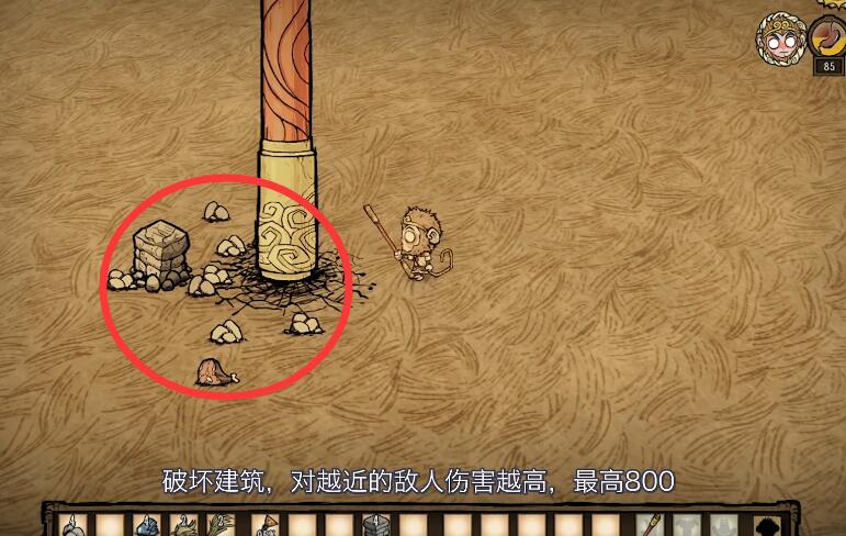 孫悟空的專屬技能破壞建築,目標離的越近傷害越高,最高八百傷害