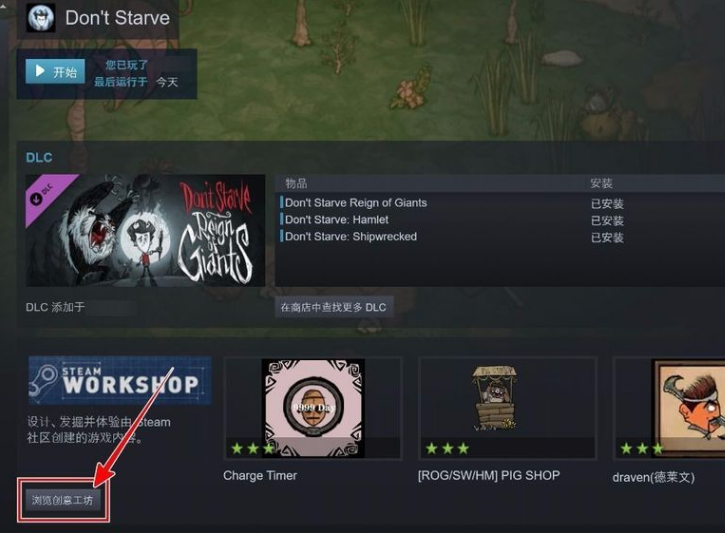1、在Steam庫中的游戲詳情界面點擊「瀏覽創意工坊」。