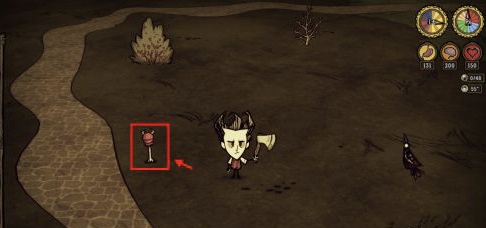 在饑荒之中玩家要找到切爾斯首先玩家應該找到眼骨,眼骨一般會在下圖所示的石板路旁邊出現具體信息如下圖所示