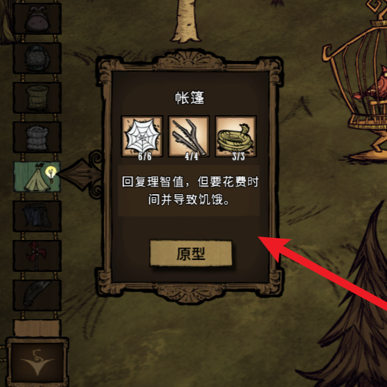 用蜘蛛絲,樹枝,繩子即可製作出帳篷。擊殺蜘蛛類怪物獲得蜘蛛絲。用採下的草製作出繩子。去野外收集樹枝即可獲得這三樣材料。
