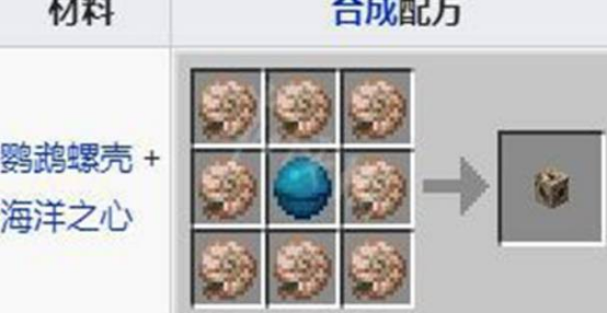 海洋之心在游戲中的用處還是很多的,其中比較常見的就是使用一個海洋之心和五個貝殼形成導管。