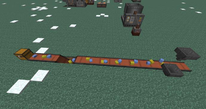 然後,將物品們輸入到路由器中它將會自動按照標記輸出,如果沒有合適的輸出面,會卡在輸入裝置內。