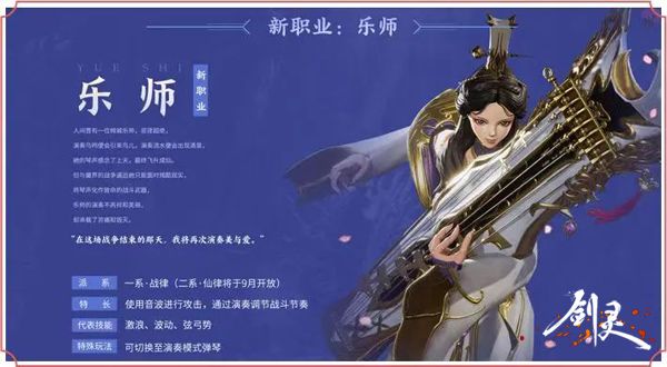其中最重磅的新內容莫過於樂師的登場,作為《劍靈》推出的第15個職業,樂師是游戲首個可自由演奏的女性專屬職業,人/天/靈三個種族都可以創建樂師職業,非戰鬥狀態下樂師還可以按TAB+1切換至自由演奏模式進行演奏。目前已開放樂師第一派系:戰律,二系:仙律預計將於9月份開放,一起期待吧!