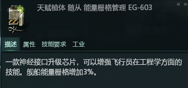 +3%能量柵格腦插的價格相對較低,3%的能量柵格提升也足以彌補某些技能沒有全5導致的艦船能量柵格不夠,一些軍團的後勤也會確保能量柵格腦插的庫存充足,以防止在需要組「極限配置」艦隊時沒有腦插發。