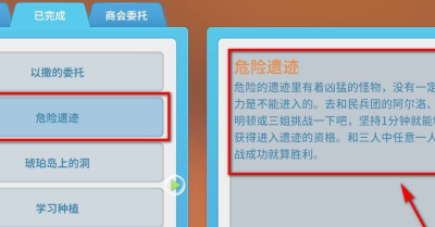 3.再接著去做任務,選擇危險遺跡,完成任務。