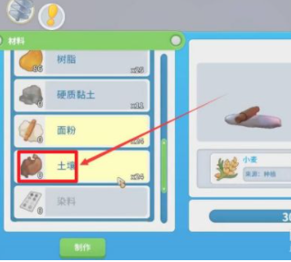 3、進入製作頁面之後,我們用滑鼠左鍵往下拖動滑輪,尋找土壤。