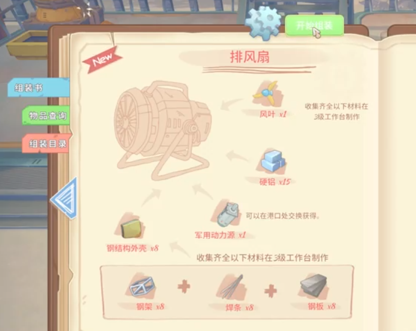 電風扇不能製造,玩家可以在一號礦場內挖礦獲得物品電風扇,玩家只能製作排風扇,收集完整材料以後可以在3級工作台製作獲得。