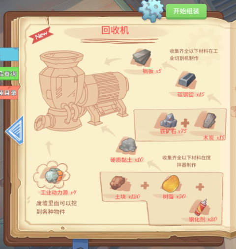 回收機組裝完畢供能後,就像往火力供能機里放東西一樣,把石爐往回收機里放就行