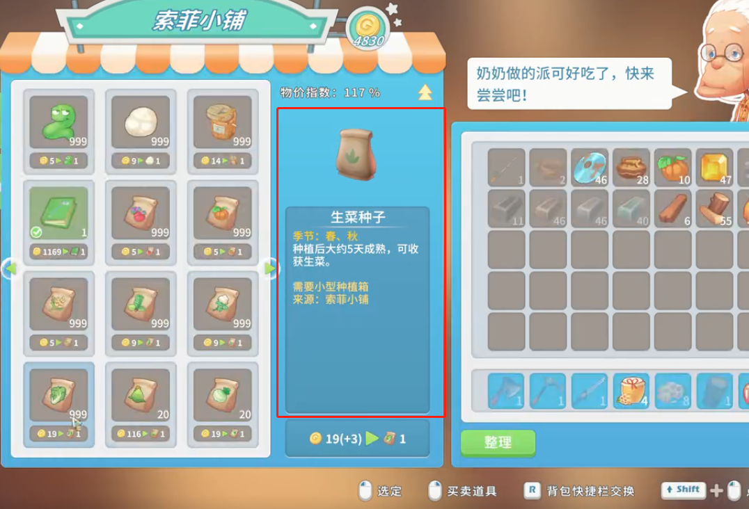 首頁 波西亞時光 問答 波西亞時光怎麼種生菜? 2023-02-15 ①如下圖所示,玩家在索菲小鋪買了生菜種子之後;②將生菜種子放置到下方的物品欄中,之後選中生菜種子,走到小型種植箱面前,點擊滑鼠左鍵播種;③之後就播種成功了,生菜種子種植時間為5天。