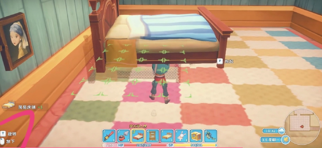 2.接著挑選合適的位置,點擊滑鼠左鍵就可以放下抬起的床,操作提示在左下角。