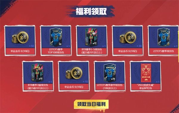 在古利特上線之際,我們也送上游戲內專屬福利,每日登錄游戲即可領取最新TOTS賽季球員包、BTB賽季球員包或者專屬BP獎勵!