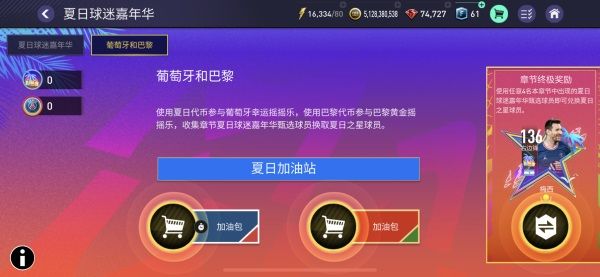 在葡萄牙和巴黎章節中,小夥伴們可以使用夏日代幣,進行搖搖樂的抽取,獲取葡萄牙和巴黎聖日耳曼的頂級球星。