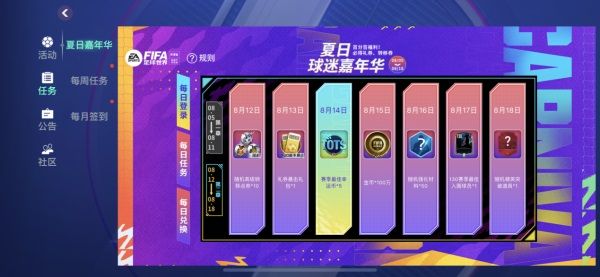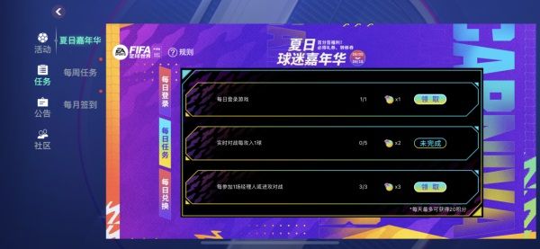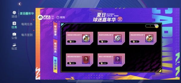 夏日球迷嘉年華章節中,玩家朋友們可以跳轉至每周任務和夏日挑戰賽、以及完成章節中的夏日特訓和夏日對決獲取夏日球迷嘉年華球員和夏日代幣獎勵。