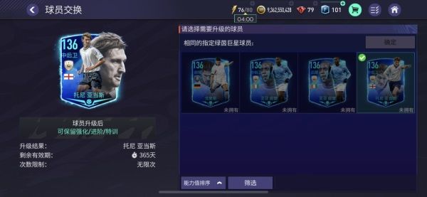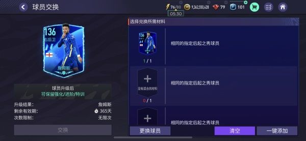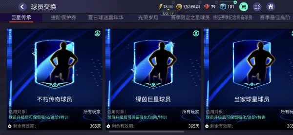 玩家可以在球員交換中,通過不同的交換條件,交換到當家球星球員、綠茵巨星球員、不朽傳奇球員。
