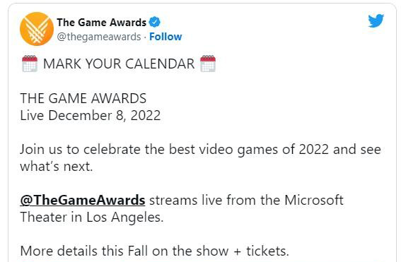 rn TGA主持人Geoff Keighley現已確認,今年的TGA 2022頒獎典禮將於12月8日舉行。rn