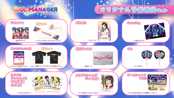 化身偶像事務所的製作人,一邊發掘並培育年輕的次世代流行偶像,一邊製作附帶握手券的CD丶召開選秀活動丶開辦直營咖啡店等等,來讓偶像事務所發展壯大吧!要僱傭誰、拋棄誰、捧紅誰都由你決定。偶像之間的勾心鬥角不過是家常便飯。而隨機觸發的事件,沒準就會讓你發現旗下偶像的醜聞……。
