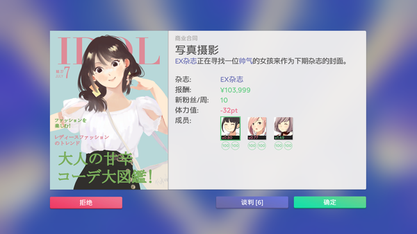 除了單張CD發行,你還可以自由經營各種業務,包括直營的劇場,咖啡館丶偶像選秀和節目製作。 然而,在有限的資金下,要小心別讓事務所陷入財務困境。