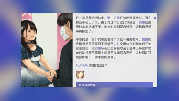 電視節目捏造的醜聞,成員之間的不和諧,在偶像管理方面上要面對種種問題。為了避免風險,一定要搞好人際關系,圓滑順利的經營事務。