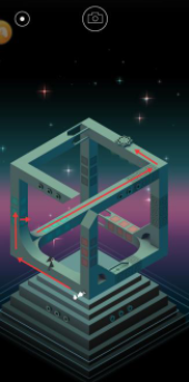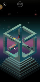站到按鈕上後,燈會亮起,然後轉動不規則圖形,讓小姑娘走到門內,這次又回到第一個場景,繼續轉動柱子,尋找另一條可以到達門的路,然後把小姑娘轉到可以到達門的路,然後進入第二道門,轉換場景。