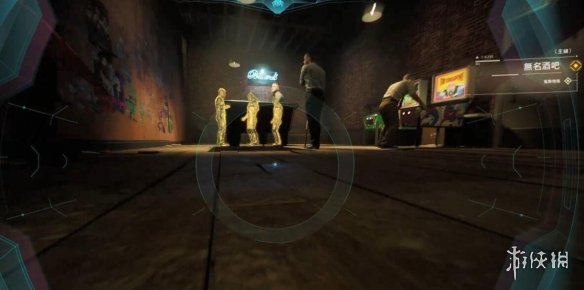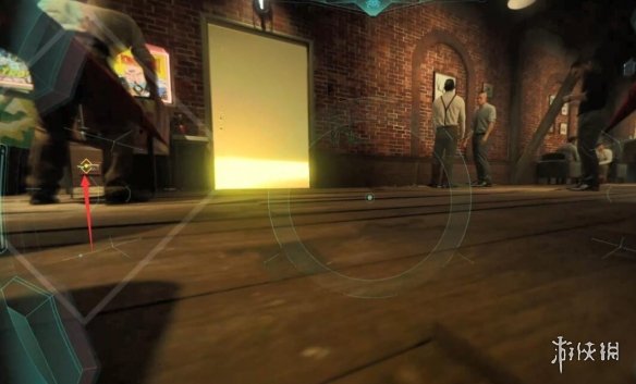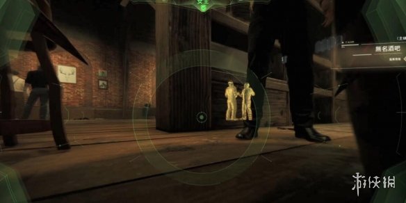 離開吧台,找到發金光的目標,然後躲到桌子下面偷聽情報。