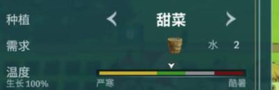 這階段過了,有了鋸木和採石場過後就簡單了,資源不缺了,可以做農場了,種甜菜,如圖,有溫度和成長效率的對比。只說一點,只要是100%,就拉滿人去種。只要到60%,直接停運,絕不浪費人力(簡單模式無所謂,人力不值錢,可以吃60%)