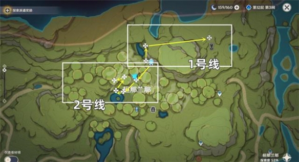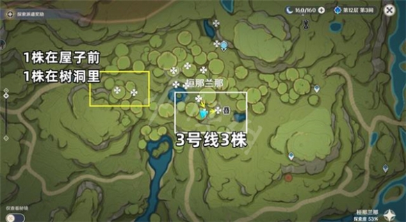 拿完後向東走到如圖位置的3號線,可以拿到3株,這裡比較好找。
