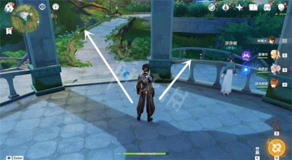 傳送回七天神像,向西南方走,總共可以拿到10株帕蒂莎蘭,1株在路邊,比較好找。2株在下面的屋子旁邊,4株在高處的屋子旁邊,3株在機關牆後面,需要用草種子打碎。